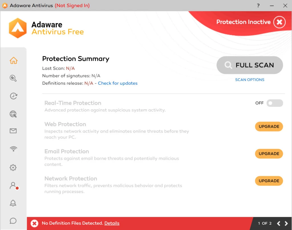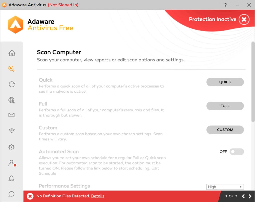 Adaware มอบการผสานรวมที่ดีที่สุดกับระบบปฏิบัติการ Windows 10 และWindows 11และมีตัวเลือกการสแกนหลัก 3 แบบ ได้แก่ ด่วน เต็ม และกำหนดเอง